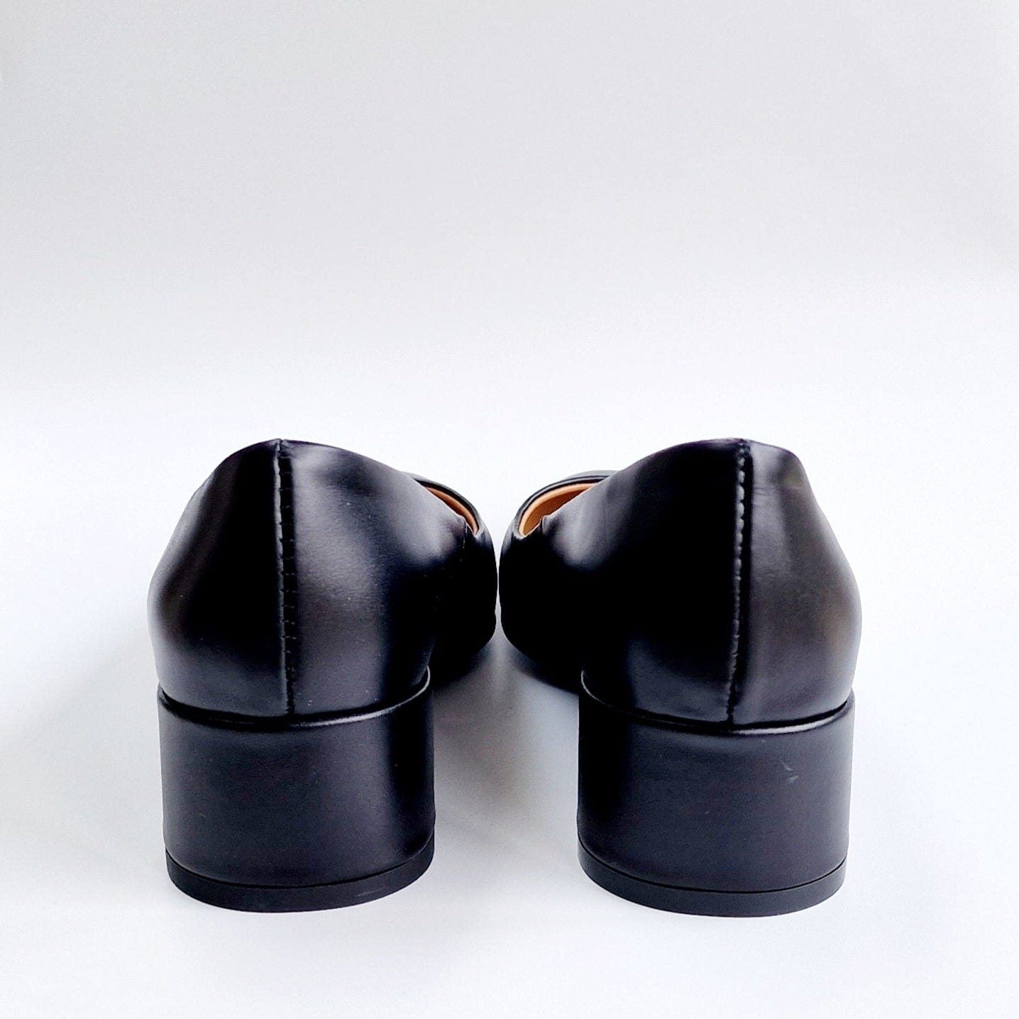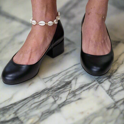 The ARIAN leather pump is a low-profile, elegant shoe with a smooth leather upper, cushioned insole for all-day comfort, and a 3cm block heel that adds subtle lift without sacrificing stability. The almond-toe silhouette and clean lines create a timeless look—shown in light beige; also available in classic black.