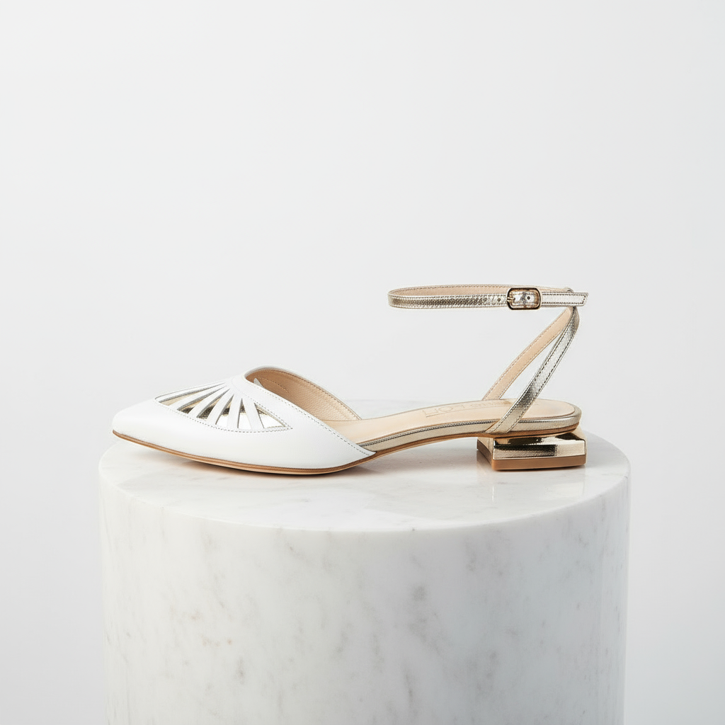 Style Tip: Wear AURUM with a slip midi or cropped trousers to showcase the cut‑out vamp and ankle strap—choose gold for evening warmth or white for clean, daytime minimalism; add a delicate anklet for extra petite-friendly detail.