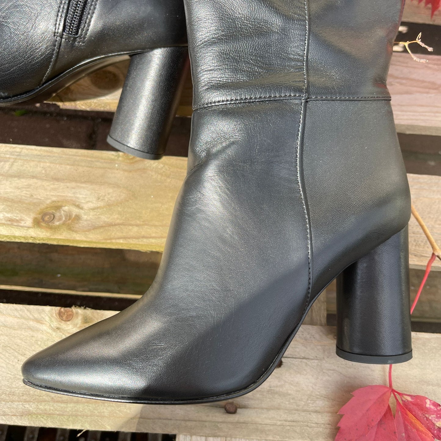 Meet ELYSE, our sleek petite knee-high boot crafted in genuine black leather inside and out. The 6 cm block heel adds comfortable lift that elongates shorter legs, while the refined pointed toe and clean shaft keep the silhouette slim. A full-length inner zip offers easy on-off, and the subtle stretch panel hugs petite calves without gaping. Designed for small-size feet, ELYSE is your polished everyday boot from desk to dinner.