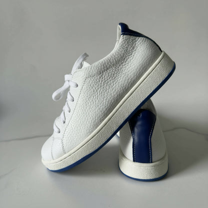 Step up your casual collection with LIRA, petite sneakers crafted from premium white leather with striking blue leather highlights. Designed for petite feet and set on a 2cm platform sole, these sneakers combine all-day comfort with standout style. The soft leather inner makes every step a breeze, while the eye-catching blue details add a subtle yet modern twist to your everyday wear.